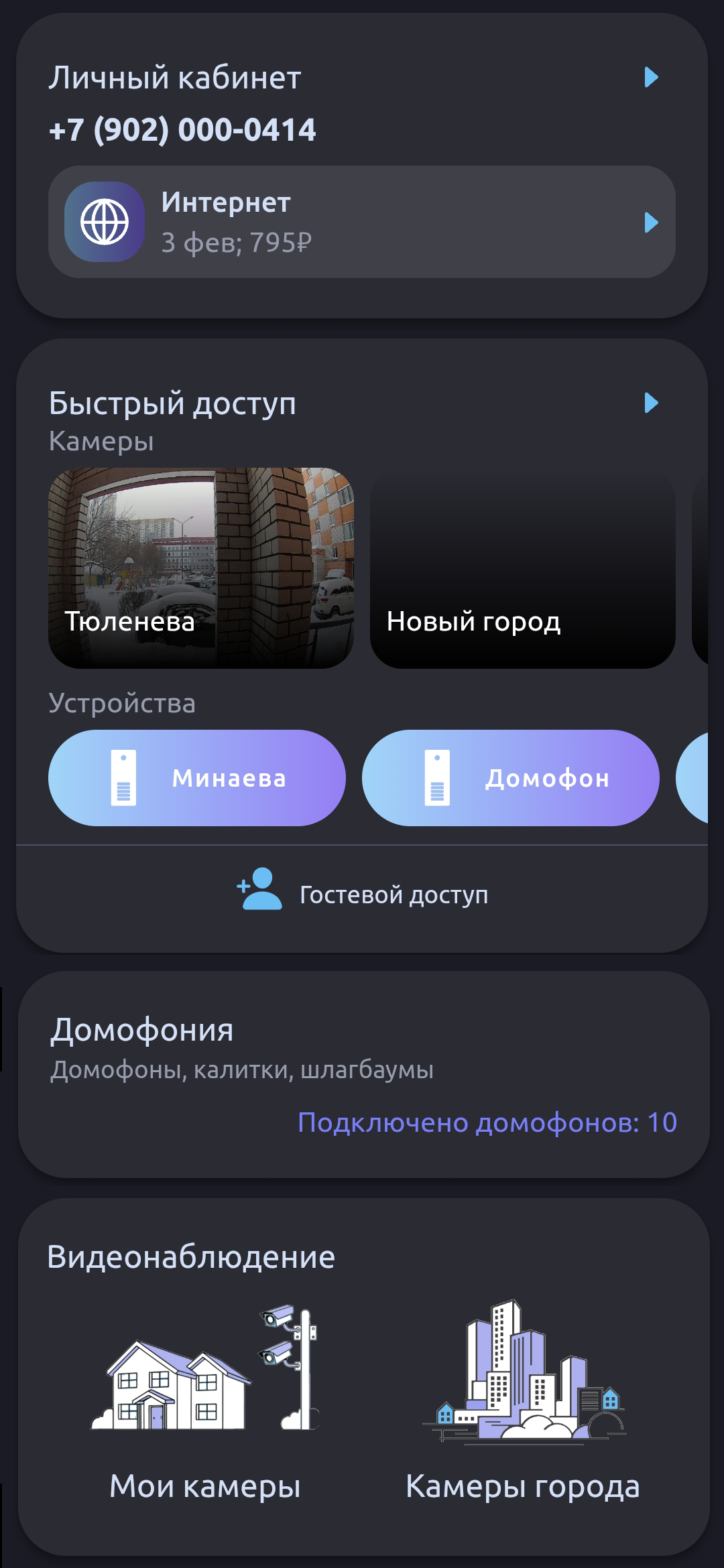 Данный раздел создан для более удобного доступа к просмотру камер и открытию часто используемых дверей или шлагбаумов.
